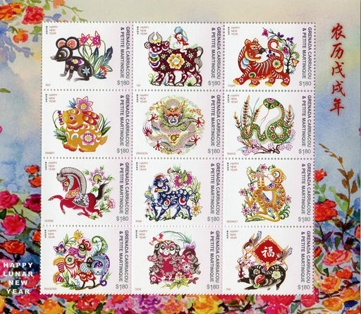 名称:格林纳达格林纳丁斯发行的农历戊戌年十二生肖小全张