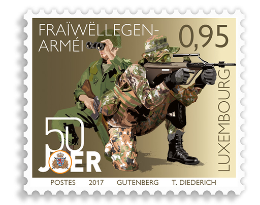 卢森堡5月9日发行志愿兵役制50周年邮票