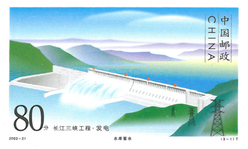 长江三峡工程是世界上最大的水利枢纽工程,是具有防洪、发电、航运等巨大综合效益的水资源多目标开发工程。工程总工期为17年,分三个阶段施工。1993年-1997年为第一阶段,以实现大江胜利截流为标志;1998年-2003年为第二阶段,以实现水库初期蓄水到高程135米、双线五级船闸通航和首批机组发电为标志;2004年-2009年为第三阶段,以实现全部机组发电和枢纽工程全部完建为标志。这套邮票图案旨在表现这一伟大工程第二阶段水库蓄水、船闸通航、电站发电三大目标的顺利实现。