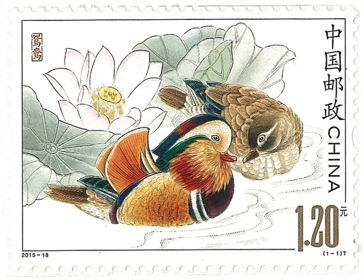 鸳鸯形象美好,又总是相依相偎,因而在一些日用器物及年画上,也可常常见到。此套邮票的发行日期定于中国传统节日——“七夕”情人节,寓意爱情甜蜜,生活幸福。