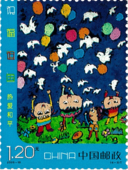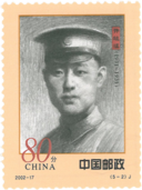 一、面值3.5元邮票:十万青年十万军。抗战后期,国民政府主席蒋中正为充实国军战力,1944年10月以「一寸山河一寸血,十万青年十万军」号召知识青年从军,反应热烈,计有十二万余青年从军。