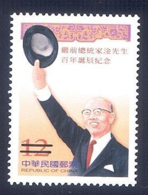 严前总统家淦先生生于民国前7年9月25日(农历),毕生奉献国事,为全民所敬爱,不幸于中华民国82年12月24日逝世,享年90岁。为使国人感念及缅怀这位可敬的政坛长者,台湾中华邮政配合本(93)年11月7日严前总统家淦先生百年诞辰纪念,特发行「严前总统家淦先生百年诞辰纪念邮票」1枚。
