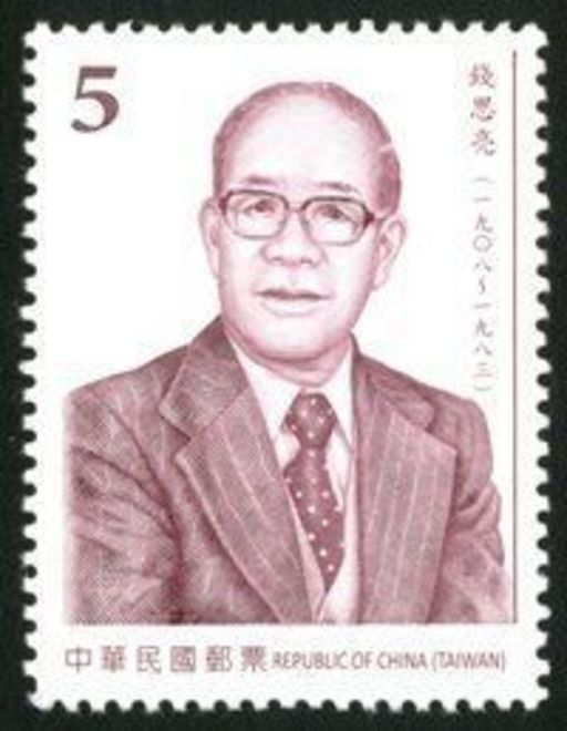 二、钱思亮(面值5元):浙江杭县人,为著名化学家及教育家。于台湾大学校长任内,除戮力维护自由、独立之学风外,更积极推展「普遍且均衡发展」之治校理念。于中央研究院院长任内,极力提升整体研究环境,奠定生命及数理科学领域之重要基础,对台湾科学研究发展贡献卓著;也是70年代在教育、研究与科学发展上之重要舵手。