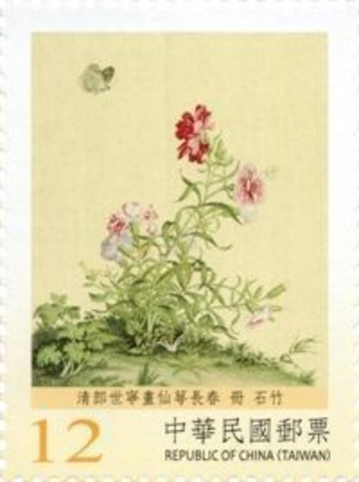 为阐扬我国历代文物之美,台湾中华邮政特以国立故宫博物院典藏之郎世宁花鸟佳作-仙萼长春为主题,规划系列邮票16枚,分为上、下2辑发行。