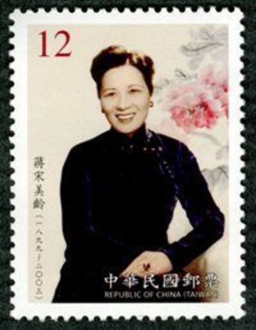 蒋宋美龄女士一生跨越3个世纪,经历开国、抗战、戡乱等时期。第二次世界大战期间,应邀赴美国国会演讲,成功争取外援;陪同先总统蒋中正先生出席开罗会议,确保我国领土完整等,卓有贡献。民国39年成立中华民国妇女联合会,呼吁妇女服务国家社会,其后创办华兴育幼院及筹设振兴复健医学中心等,照顾遗孤,医护伤病。为缅怀蒋宋美龄女士对国家社会的奉献,台湾中华邮政特以其肖像结合画作规划邮票1枚。