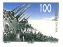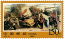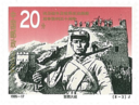 【351】“决战前夕”,图案是身穿灰蓝色大棉衣,右手叉腰,左手拿着香烟的毛泽东同志,他面对窑洞墙壁上的军事地图,聚精会神地思索着,真实、自然、恰如其分地展现了革命领袖胸中自有雄兵百万、运筹于帷幄之中的博大胸怀。
