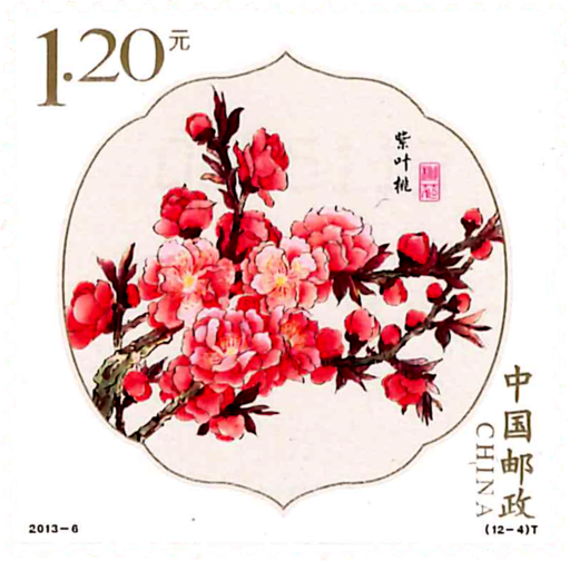 桃花是我国最古老的名花之一,历史久远,早在《诗经》中就有关于桃花的诗句:“桃之夭夭,灼灼其华”。我国桃花品种极为丰富,复瓣形似梅红人,重瓣形似牡丹,红的耀眼,灼灼欲燃;白的夺目,莹莹似雪;粉的如妆,娇媚可人。姚花每年三四月间开放,花期可持续一个月左右。邮票展示了十二个桃花品种,分别是:白碧桃、单粉、品霞、紫叶桃、瑕玉寿星、碧桃、五宝桃、照手红、绿萼垂枝、二色桃、菊花桃、绯桃。