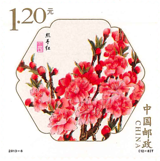 桃花是我国最古老的名花之一,历史久远,早在《诗经》中就有关于桃花的诗句:“桃之夭夭,灼灼其华”。我国桃花品种极为丰富,复瓣形似梅红人,重瓣形似牡丹,红的耀眼,灼灼欲燃;白的夺目,莹莹似雪;粉的如妆,娇媚可人。姚花每年三四月间开放,花期可持续一个月左右。邮票展示了十二个桃花品种,分别是:白碧桃、单粉、品霞、紫叶桃、瑕玉寿星、碧桃、五宝桃、照手红、绿萼垂枝、二色桃、菊花桃、绯桃。