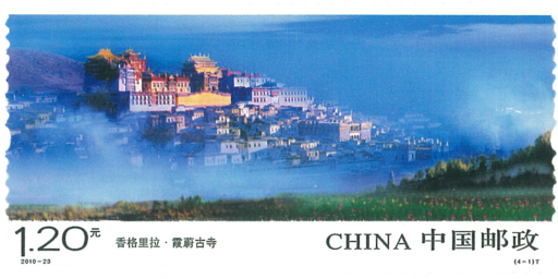 香格里拉位于我国云南省西北部,是迪庆藏族自治州州府驻地。“香格里拉”一词,藏语意为“心中的日月”,是1933年英国作家詹姆斯·希尔顿在小说《消失的地平线》中描绘的中国藏区一个和平、宁静之地。邮票“霞蔚古寺”表现的是噶丹·松赞林寺的景色。噶丹·松赞林寺位于云南省香格里拉县城北佛屏山麓,始建于公元1679年,占地500余亩,是云南藏区规模最 大的藏传佛教寺院,有“小布达拉宫”之誉。邮票“碧水青天”中的景致取自纳帕海自然保护区。纳帕海自然保护区位于香格里拉县西北,海拔3266米。纳帕海为季节性湖泊,枯水时部分为沼泽草甸,是重要的牧场,也是珍稀动物的重要栖息地。邮票“平湖叠翠”表现了普达措国家公园中的美景。普达措国家公园位于香格里拉县城东北,总面积近2000平方千米,是我国最大的国家公园。邮票“雪域古城”展现了独克宗古城的风貌。独克宗古城位于香格里拉县城东南部,历史悠久,在唐宋时期就是滇、川、藏茶马互市的重镇,是藏区保存最完好的古城之一。邮票小型张“日照金山”展示的是梅里雪山的壮美景色。梅里雪山位于迪庆藏族自治州德钦县西北横断山脉中段,是怒江与澜沧江的分水岭。梅里雪山海拔在6000米以上的雪峰有10余座,俗称“太子十三峰”。主峰卡瓦格博峰是云南第一高峰,被藏民称为“雪山之神”。