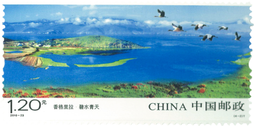 香格里拉位于我国云南省西北部,是迪庆藏族自治州州府驻地。“香格里拉”一词,藏语意为“心中的日月”,是1933年英国作家詹姆斯·希尔顿在小说《消失的地平线》中描绘的中国藏区一个和平、宁静之地。邮票“霞蔚古寺”表现的是噶丹·松赞林寺的景色。噶丹·松赞林寺位于云南省香格里拉县城北佛屏山麓,始建于公元1679年,占地500余亩,是云南藏区规模最 大的藏传佛教寺院,有“小布达拉宫”之誉。邮票“碧水青天”中的景致取自纳帕海自然保护区。纳帕海自然保护区位于香格里拉县西北,海拔3266米。纳帕海为季节性湖泊,枯水时部分为沼泽草甸,是重要的牧场,也是珍稀动物的重要栖息地。邮票“平湖叠翠”表现了普达措国家公园中的美景。普达措国家公园位于香格里拉县城东北,总面积近2000平方千米,是我国最大的国家公园。邮票“雪域古城”展现了独克宗古城的风貌。独克宗古城位于香格里拉县城东南部,历史悠久,在唐宋时期就是滇、川、藏茶马互市的重镇,是藏区保存最完好的古城之一。邮票小型张“日照金山”展示的是梅里雪山的壮美景色。梅里雪山位于迪庆藏族自治州德钦县西北横断山脉中段,是怒江与澜沧江的分水岭。梅里雪山海拔在6000米以上的雪峰有10余座,俗称“太子十三峰”。主峰卡瓦格博峰是云南第一高峰,被藏民称为“雪山之神”。