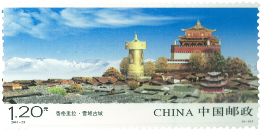 香格里拉位于我国云南省西北部,是迪庆藏族自治州州府驻地。“香格里拉”一词,藏语意为“心中的日月”,是1933年英国作家詹姆斯·希尔顿在小说《消失的地平线》中描绘的中国藏区一个和平、宁静之地。邮票“霞蔚古寺”表现的是噶丹·松赞林寺的景色。噶丹·松赞林寺位于云南省香格里拉县城北佛屏山麓,始建于公元1679年,占地500余亩,是云南藏区规模最 大的藏传佛教寺院,有“小布达拉宫”之誉。邮票“碧水青天”中的景致取自纳帕海自然保护区。纳帕海自然保护区位于香格里拉县西北,海拔3266米。纳帕海为季节性湖泊,枯水时部分为沼泽草甸,是重要的牧场,也是珍稀动物的重要栖息地。邮票“平湖叠翠”表现了普达措国家公园中的美景。普达措国家公园位于香格里拉县城东北,总面积近2000平方千米,是我国最大的国家公园。邮票“雪域古城”展现了独克宗古城的风貌。独克宗古城位于香格里拉县城东南部,历史悠久,在唐宋时期就是滇、川、藏茶马互市的重镇,是藏区保存最完好的古城之一。邮票小型张“日照金山”展示的是梅里雪山的壮美景色。梅里雪山位于迪庆藏族自治州德钦县西北横断山脉中段,是怒江与澜沧江的分水岭。梅里雪山海拔在6000米以上的雪峰有10余座,俗称“太子十三峰”。主峰卡瓦格博峰是云南第一高峰,被藏民称为“雪山之神”。