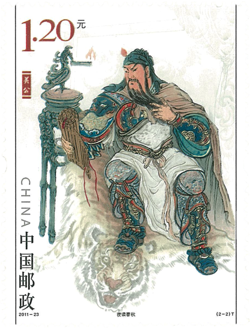关羽(?—219),约生于东汉桓帝延熹年间,字云长,本字长生,河东解县(今山西运城)人,三国时期蜀汉著名将领,封“汉寿亭侯”。《三国志演义》合理虚构曹操在徐州俘获关羽及刘备的甘、糜两位夫人后,在许昌赐关羽住宅一处。关羽避嫌,将一宅分为两院,自己住外院,晨夕问安,夜读《春秋》,秉烛达旦,传为美谈。历代各地关公像主要分为三类:第一类是持刀像,一般称为“武像”;第二类是读《春秋》像,称为“文像”;第三类是骑马像,称为“立马像”。关羽又被称为“武圣”,与“文圣”孔子齐名。全国普遍设立关帝庙加以祭祀。目前发现最早的关公塑像为湖北沙市北宋庙宇出土的陶制像,现藏荆州市博物馆。最早的画像则是金代山西平阳府(今临汾)木刻“义勇武安王位”原藏内蒙古额济纳旗西夏黑水城佛塔中,现藏俄罗斯圣彼得堡冬宫博物馆。