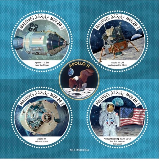 名称:马尔代夫6月15日发行阿波罗11号登录月球50周年小全张2