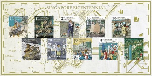 名称:新加坡6月22日发行新加坡二百周年纪念邮票
