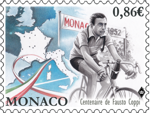 名称:摩纳哥5月29日发行Fausto Coppi诞辰100周年邮票