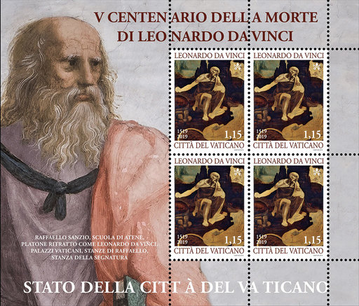 梵蒂冈4月29日发行莱昂纳多·达·芬奇逝世500周年小全张